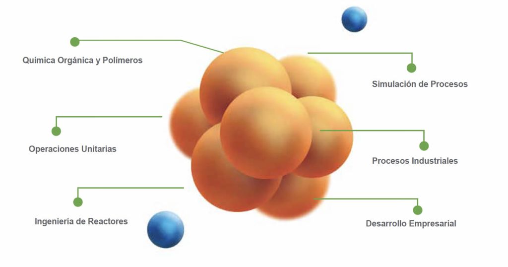 - En áreas de la ingeniería química: matemáticas, fenómenos de transporte, termodinámica, ingeniería de reactores, con un nivel avanzado y sólido.